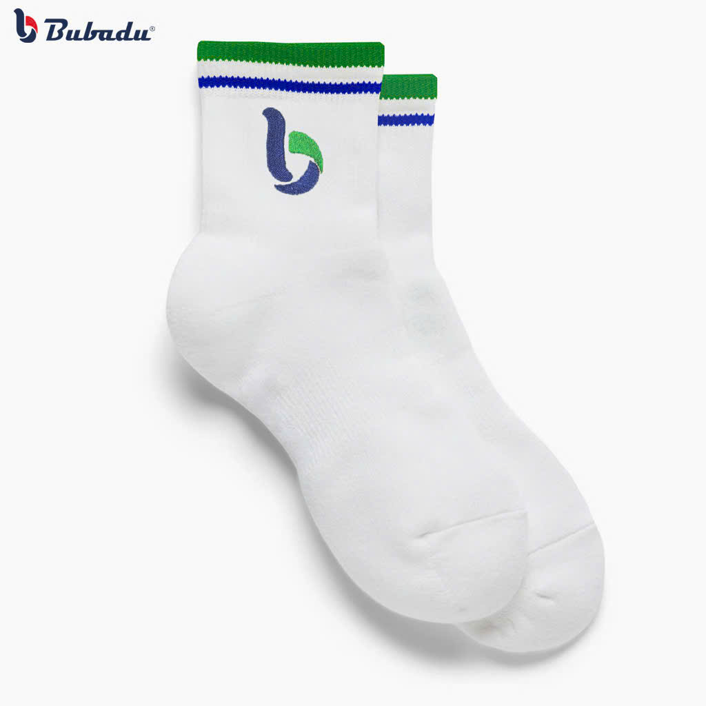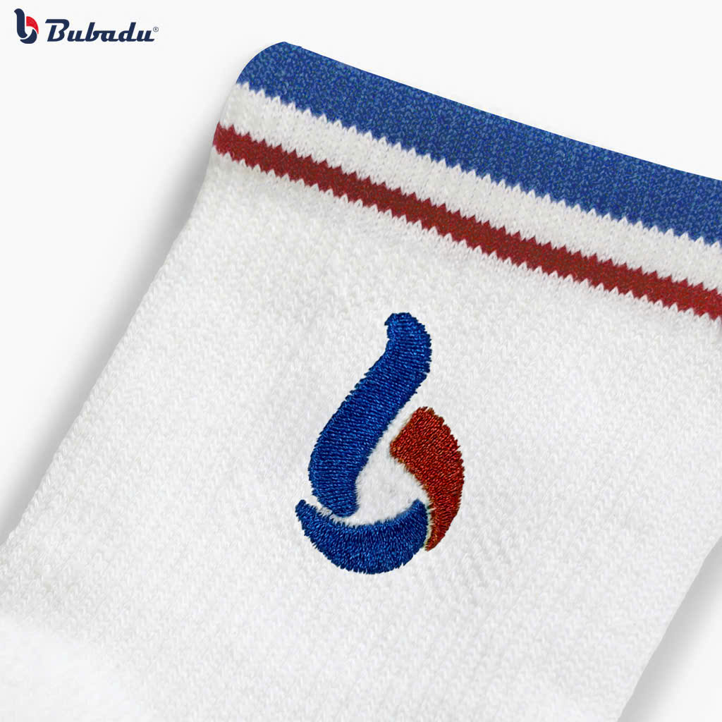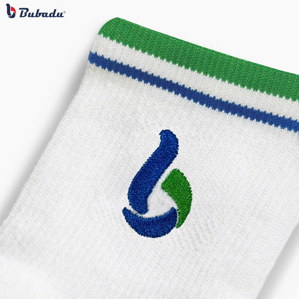 Logo Bubadu được thêu trực tiếp trên thân tất, tạo điểm nhấn nổi bật và tăng tính nhận diện thương hiệu.